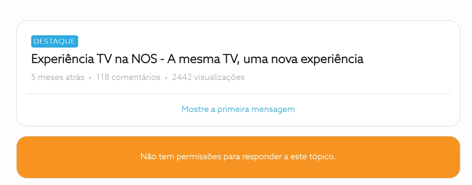 Surge-me este erro: “Não tem permissões para responder a este tópico” no tópico sobre a nova Experiência TV da NOS
