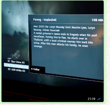 Não sendo a primeira vez, estou a evocar estes erros, hoje dia 7/05/2025, pelas 21h16mn, O canal Star Movies tem a sinopse do filme em inglês, não onstante o filme Farang - implacável até ser um filme em francês. Estamos em Portugal, as legendas e outras informações têm obrigtoriamente de ser em português. Como a v/resposta de outra info que aqui coloquei pede exemplos/provas. Aqui estão elas.