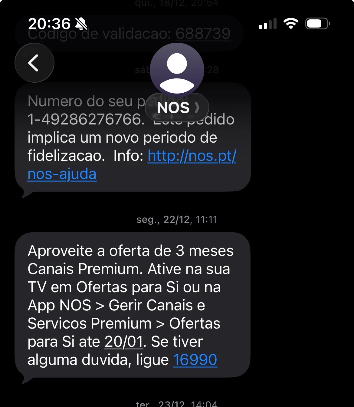 A oferta era esta “Aproveite a oferta de 3 meses Canais Premium. Ative na sua TV em Ofertas para Si ou na App NOS > Gerir Canais e Servicos Premium > Ofertas para Si ate 29/11. Se tiver alguma duvida, ligue 16990 “