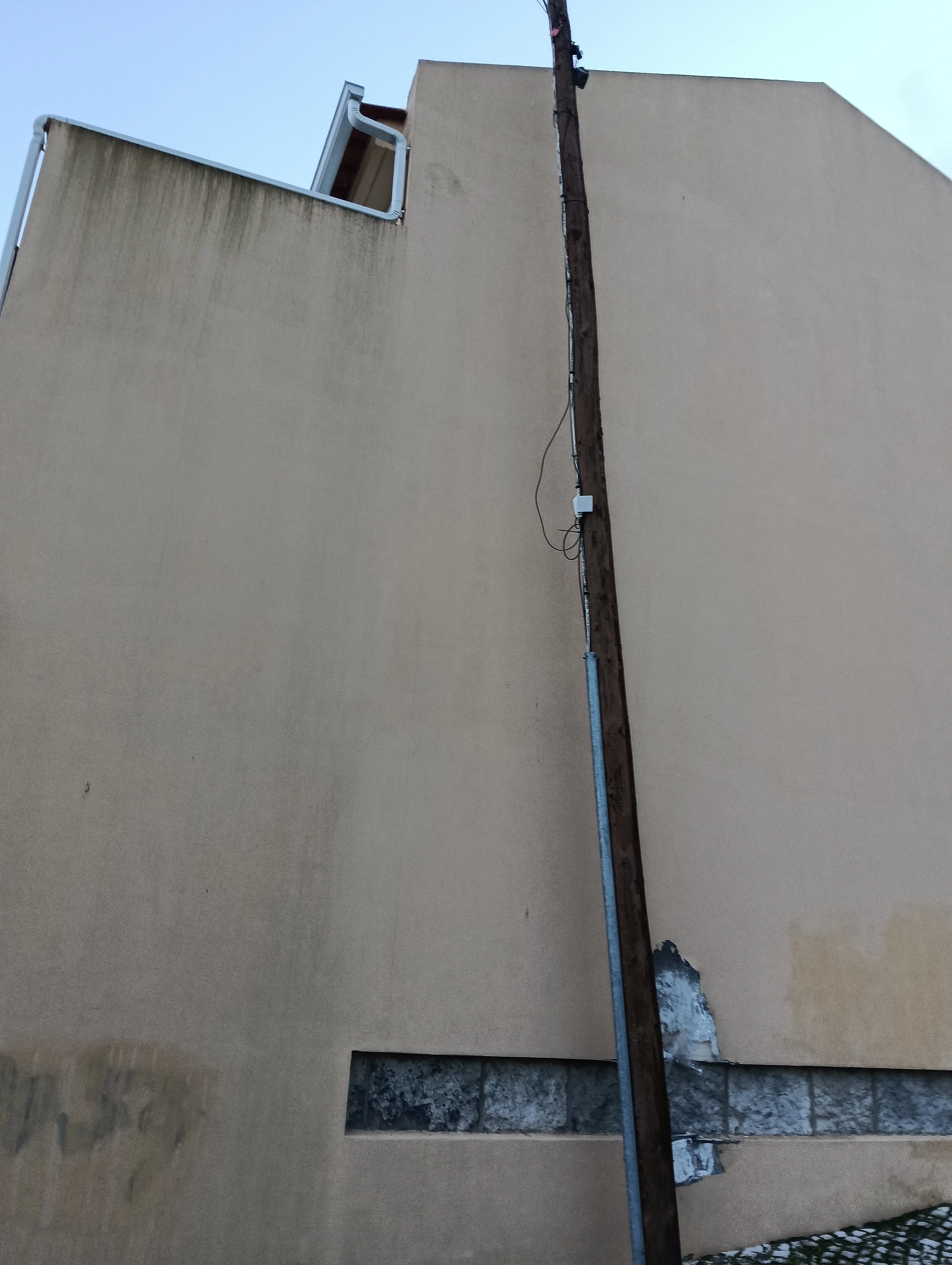 Resido na Rua das Açucenas n.º *, ****-*** Bobadela e pretendo fazer obras nas fachadas da minha casa (frente e lado), pelo que solicito a retirada dos cabos da NOS da parede lateral da minha casa que se localiza na Rua das Camélias, à semelhança do que tem sido feito noutras ruas vizinhas através de colocação de um poste (ver fotos). Confirmo a existêcia de cabos da Vodafone na minha parede, uma vez que os meus vizinhos residentes na Rua das Açucenas n.º 2 têm este serviço.