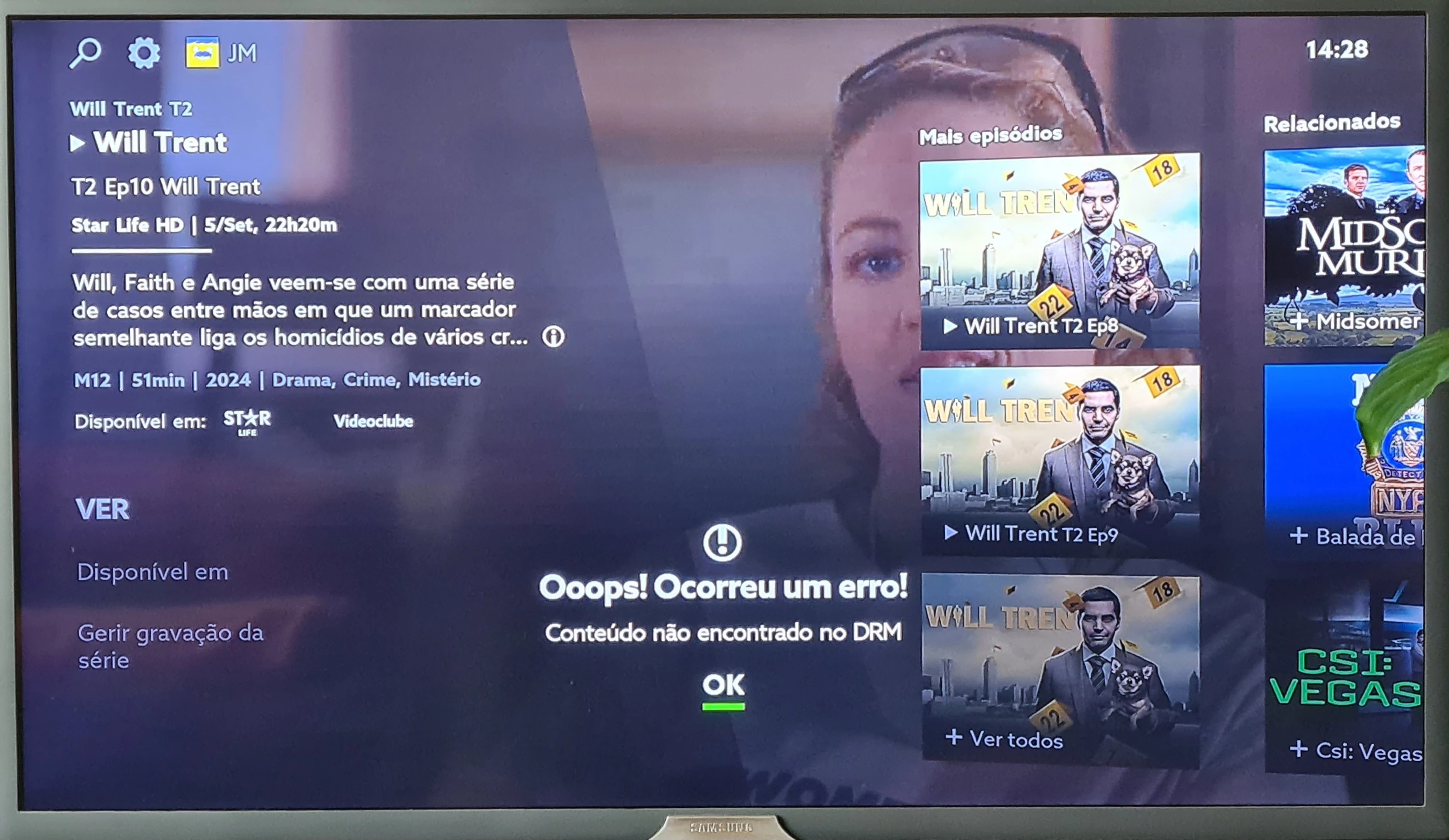Uma vez mais a programação, as gravações e o recuar 7 dias no Star Crime não estão a funcionar.